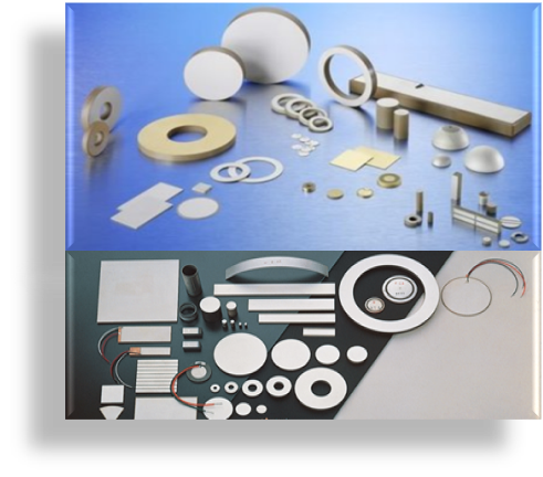 压电陶瓷是一类具有压电特性的电子陶瓷材料. 与典型的不包含铁电成分的压电石英晶体的主要区别是: 构成其主要成分的晶相都是具有铁电性的晶粒。由于陶瓷是晶粒随机取向的多晶聚集体,因此其中各个铁电晶粒的自发极化矢量也是混乱取向的. 为了使陶瓷能表现出宏观的压电特性,就必须在压电陶瓷烧成并于端面被复电极之后,将其置于强直流电场下进行极化处理,以使原来混乱取向的各自发极化矢量沿电场方向择优取向, 经过极化处理后的压电陶瓷,在电场取消之后,会保留一定的宏观剩余极化强度,从而使陶瓷具有了一定的压电性质。压电陶瓷的特性是具有压电性, 包括正压电性和逆压电性。正压电性是指某些电介质在机械外力作用下,介质内部正负电荷中心发生相对位移而引起极化, 从而导致电介质两端表面内出现符号相反的束缚电荷。